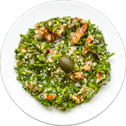 Vitkål, blomkål, torkad schalottenlök, persilja, vinäger, fefferoni, gurka, picklad gurka, oliver, morötter